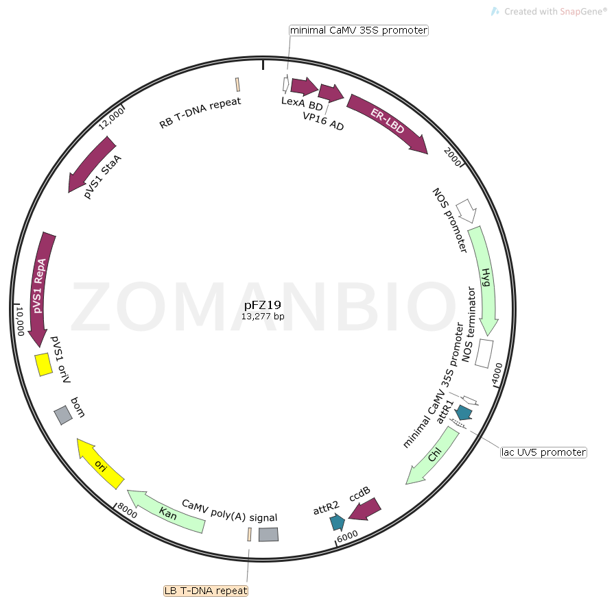 pFZ19是一個植物細胞Gateway系統(tǒng)表達質粒。