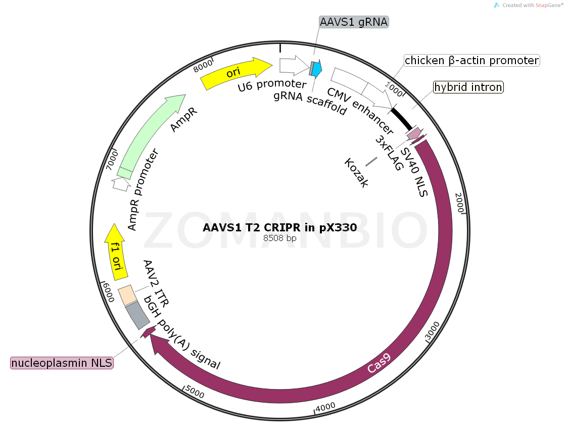 AAVS1 T2 CRIPR in pX330哺乳編輯質(zhì)粒