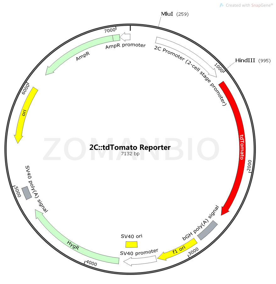 2C::tdTomato Reporter是一個(gè)哺乳細(xì)胞小鼠啟動(dòng)子紅色熒光蛋白報(bào)告質(zhì)粒。