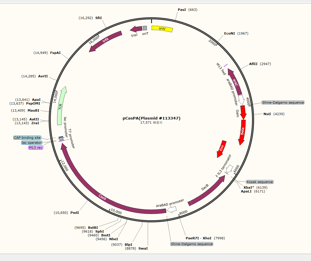 質粒序列可參考(具體以測序為準)下載:pCasPA(Plasmid #113347).txt