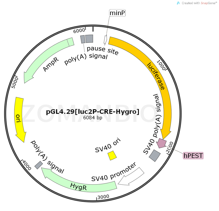 產品名稱:pGL4.29[luc2P-CRE-Hygro]