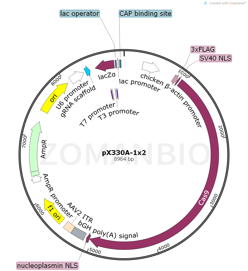 質粒序列請下載:ZK636pX330A-1x2哺乳編輯質粒.txt
