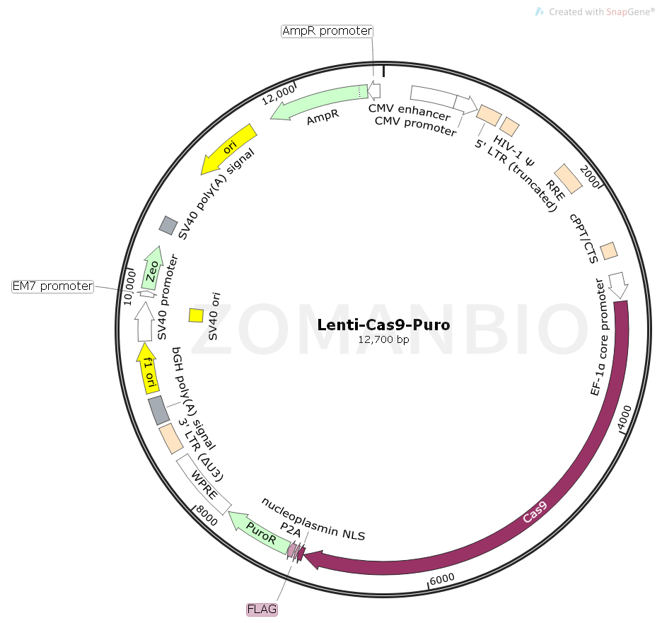質粒序列請下載:ZK683Lenti-Cas9-Puro哺乳編輯質粒.txt