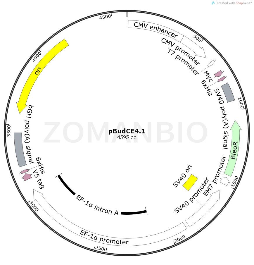 質粒序列請下載:ZK688pBudCE4.1哺乳雙框質粒.txt