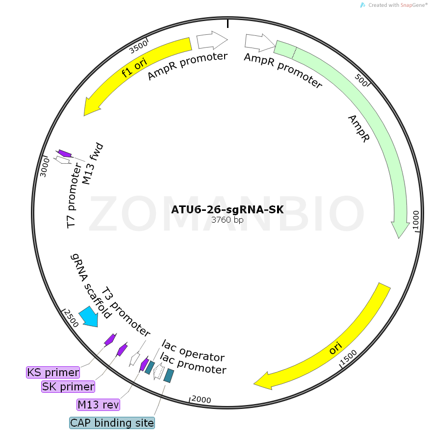 質粒序列請下載:ZK909ATU6-26-sgRNA-SK植物編輯質粒.txt