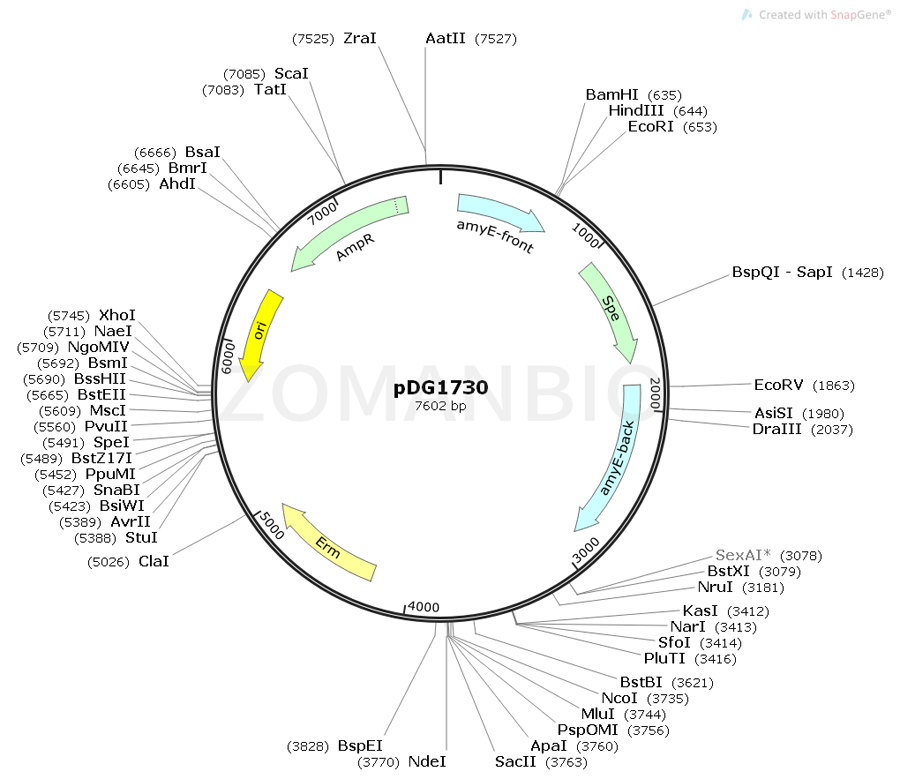 質粒序列請下載:ZK1029pDG1730枯草胞內質粒.txt