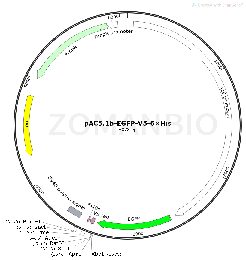 產品名稱:pAC5.1b-EGFP-V5-6×His質粒