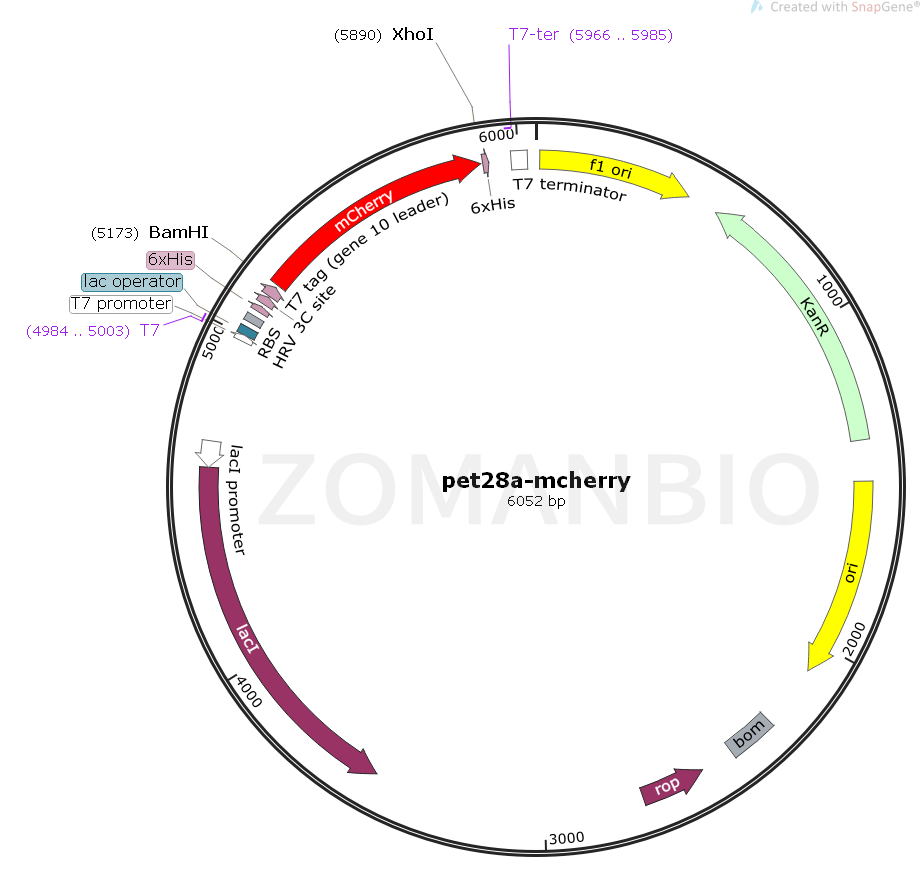 pET28a-mCherry大腸熒光質(zhì)粒。