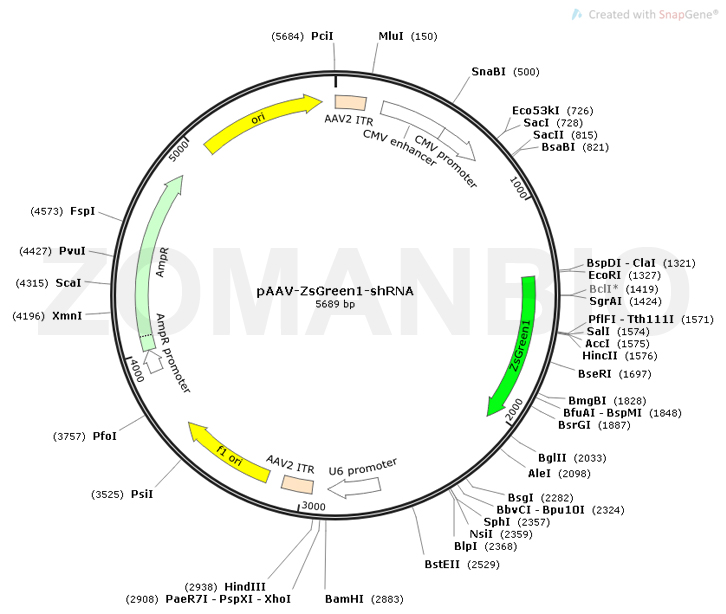 pAAV-ZsGreen1-shRNA是一個腺相關病毒干擾質粒。