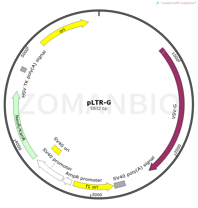 pLTR-G是一個慢病毒哺乳細胞VSVG包膜蛋白表達質粒。