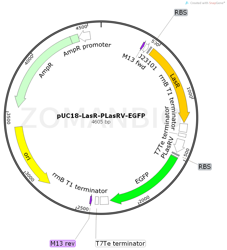 pUC18-LasR-pLasRV-EGFP質(zhì)粒
