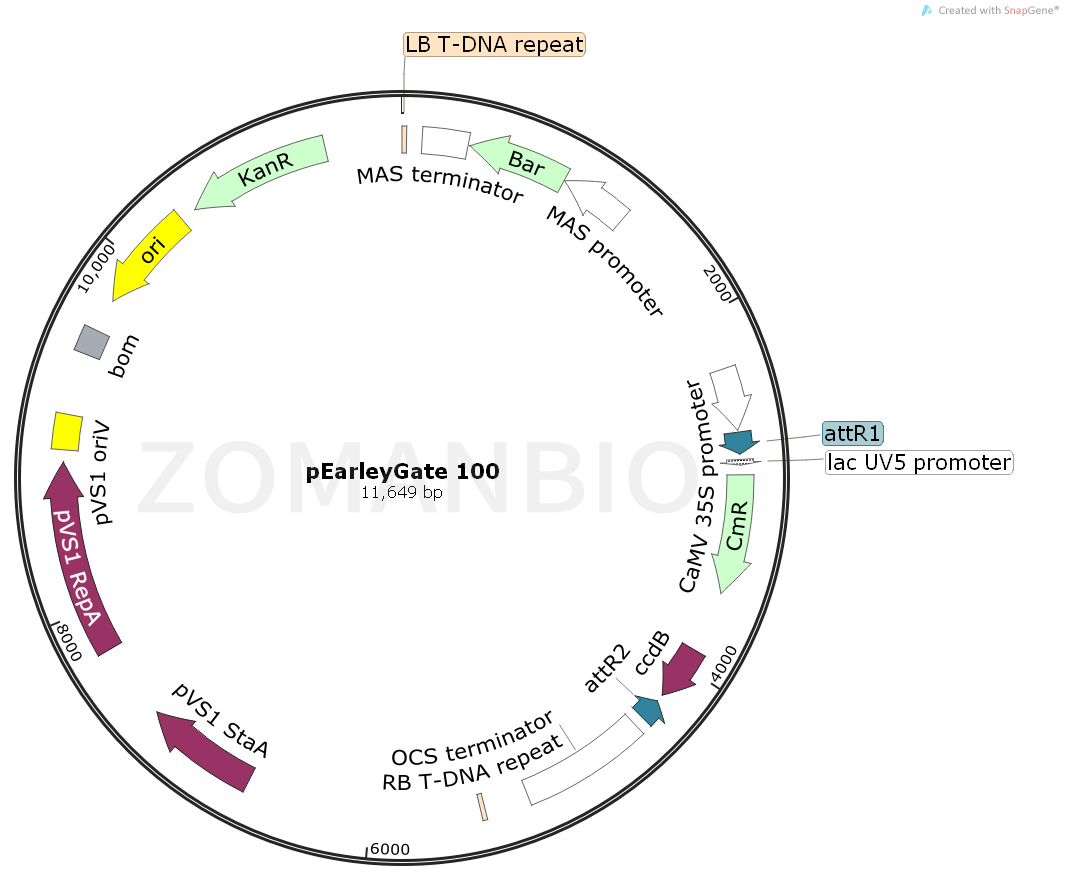 質粒序列請下載:ZK2055 pEarleyGate 100植物表達質粒.txt