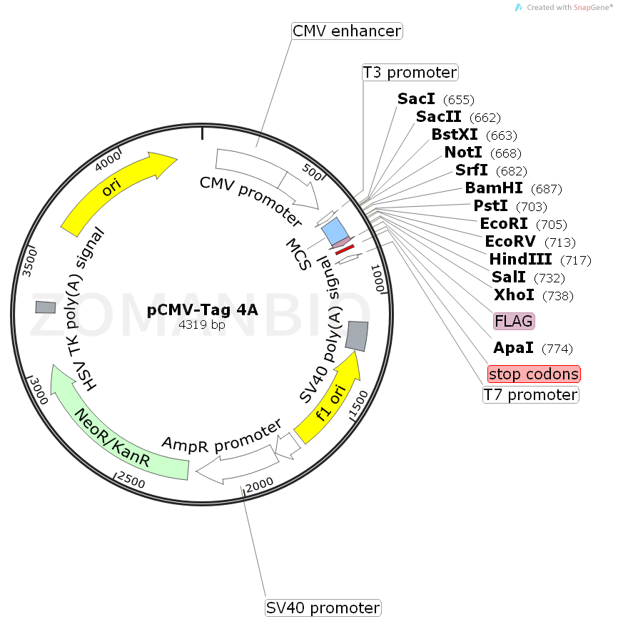 質粒序列請下載:ZK2072 pCMV-Tag 4A哺乳表達質粒.txt
