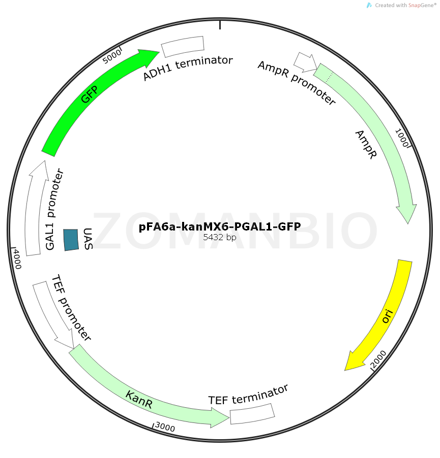 pFA6a-kanMX6-PGAL1-GFP酵母定位質粒。
