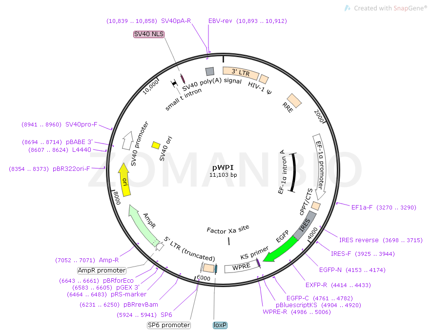 質粒序列可參考(具體以測序為準)下載:ZK2216 pWPI病毒表達質粒.txt