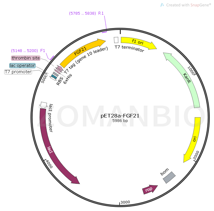 質粒序列請下載:ZK5701 pET28a-FGF21人源基因質粒.txt